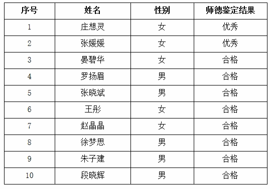 根据《英国上市公司3652021年专业技术职务任职资格评审工作安排意见》《英国上市公司365教师职业道德考核办法(修订)》《英国上市公司365教师师德失范行为处理办法(试行)》等文件的相关要求,经英国365集团官网2021年11月2日党政联席会议讨论研究,对庄想灵等10位同志申报2021年度职务职称评审师德考核鉴定公示如下: