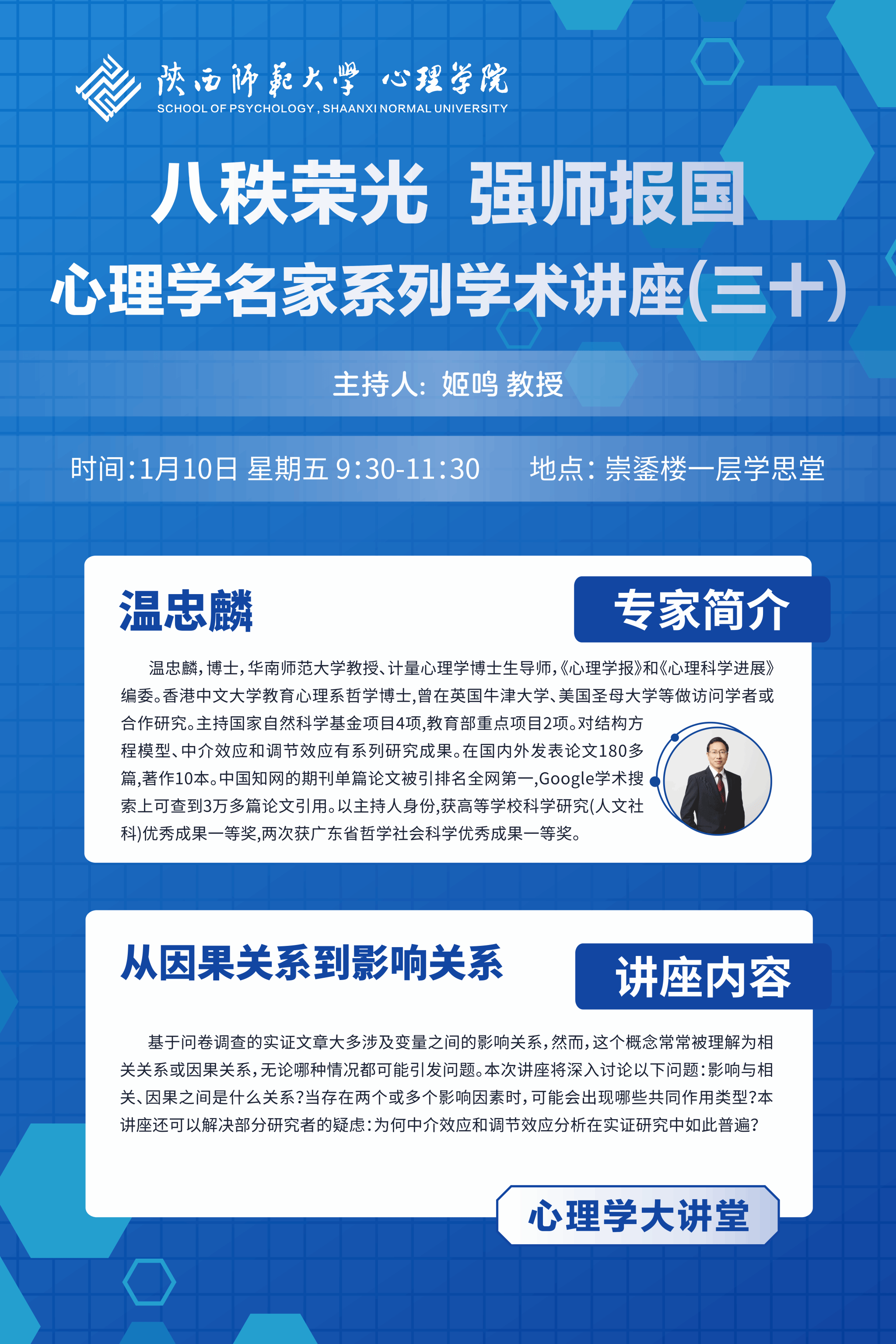 发布时间:2024年12月30日 14:55 阅读数: 报告人:温忠麟教授