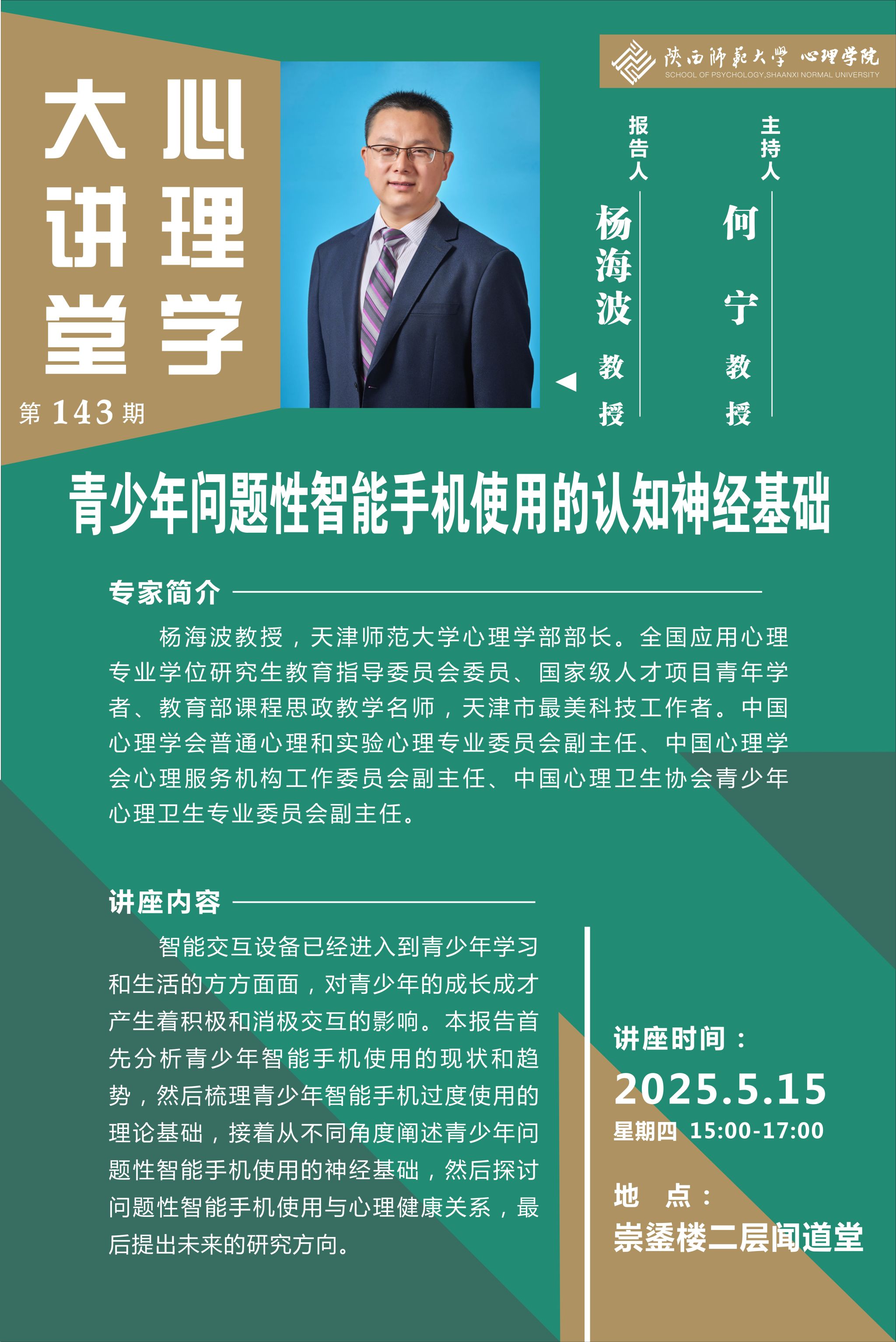 发布时间:2025年05月12日 16:04 阅读数: 报告人:杨海波教授